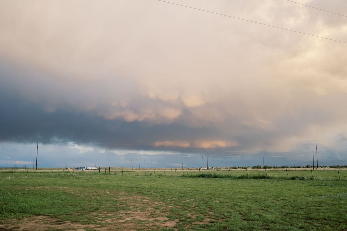 And then came the Kansas-to-Colorado haul. Storms again, of course. White-knuckle hail driving. I stopped at a dispensary at one point just to recalibrate the vibes. Solar panels were hanging on for dear life. Around 4pm I finally made it into Colorado but the weather wasn’t done with me. I pulled over in Peyton and cooked up breakfast for dinner—bacon and eggs from Missouri, Kodiak pancakes, and, of course, zero syrup. An actual crime.